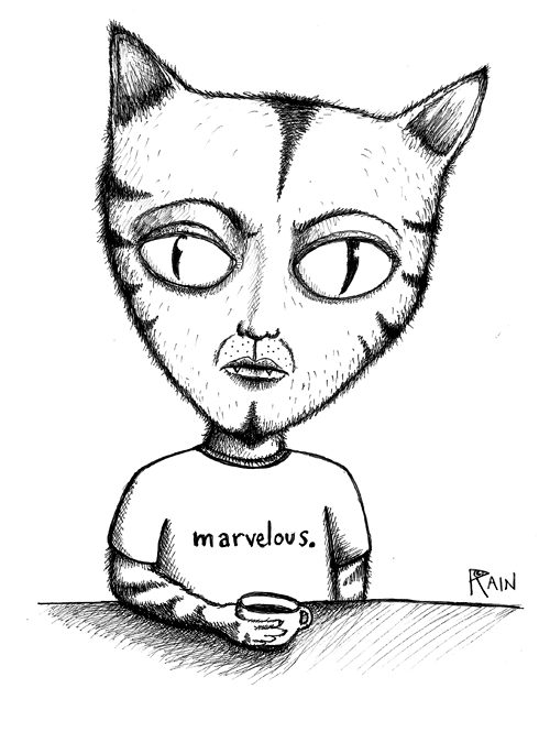 May 6, 2014 by themostmarvelousday Image art, black and white, cat, coffee, doodle, drawing, funny, humor, illustration, ink, popsurrealism, sketch, the most marvelous day
